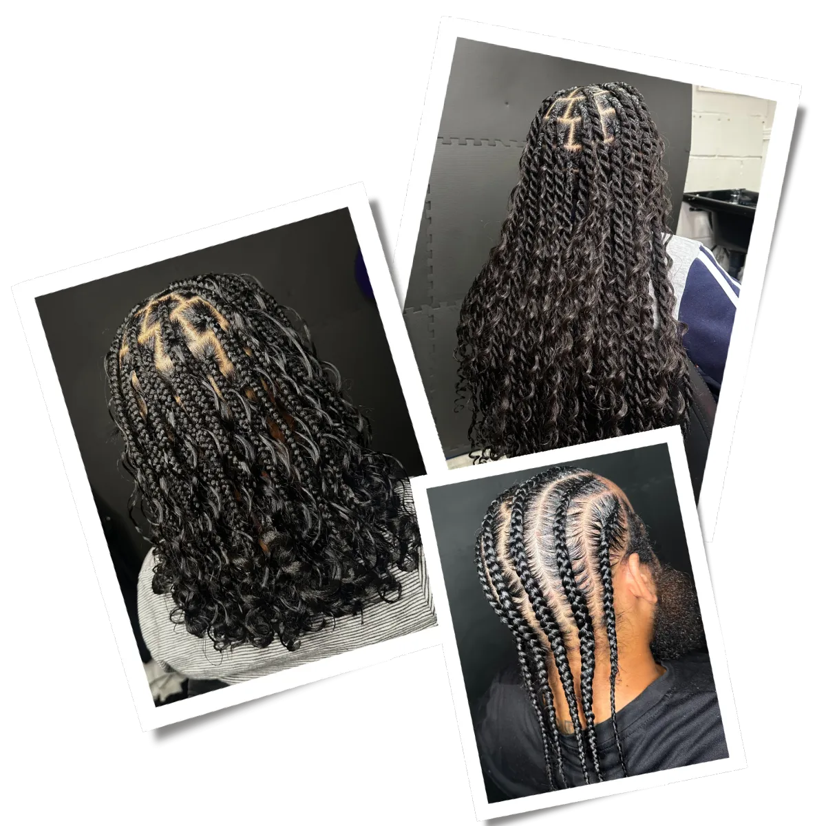 With years of experience specializing in knotless braids, box braids, feed-in braids, tribal braids, and kids’ styles, she brings both artistry and professionalism to every appointment.