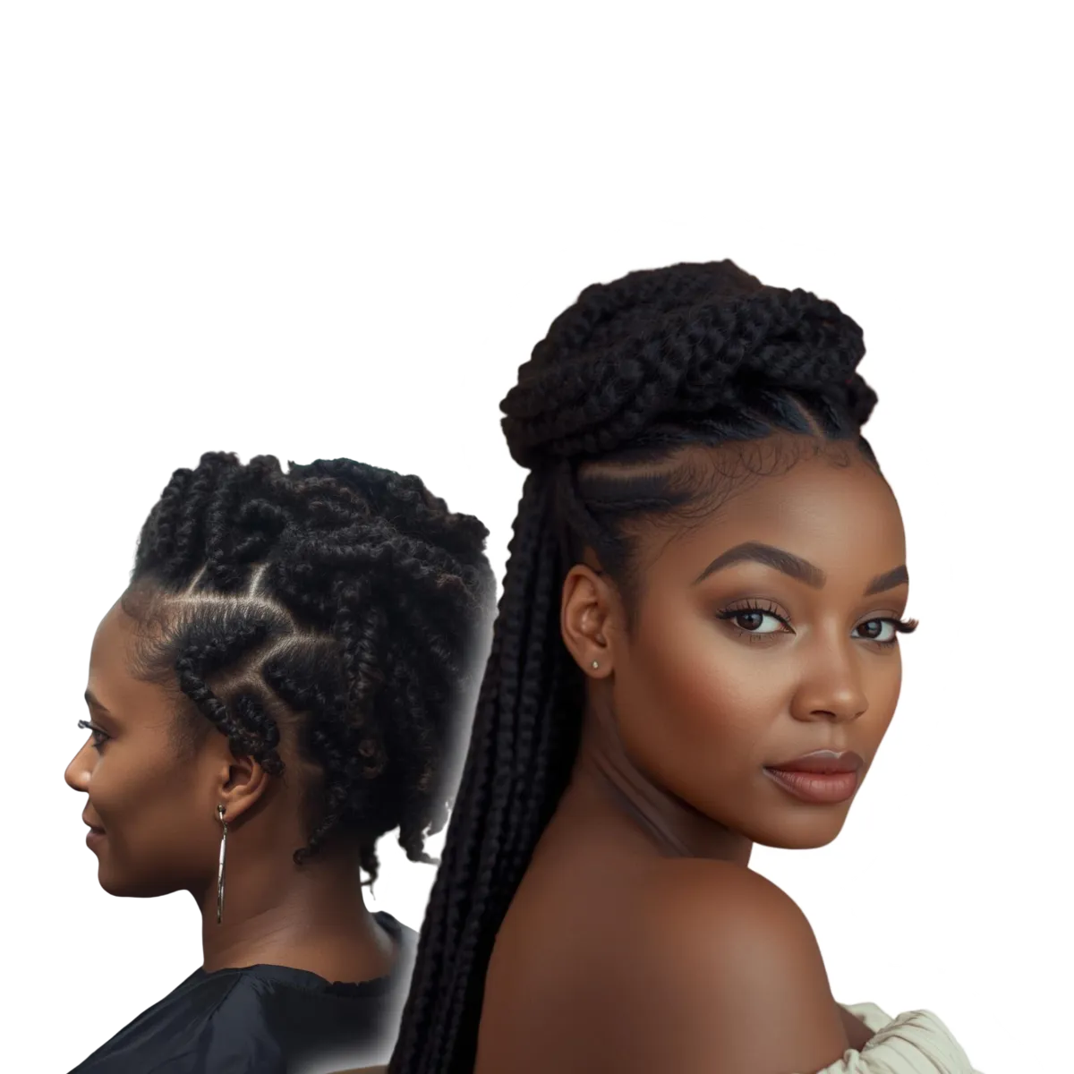 Retwists and two-strand twists typically last 3–5 weeks, depending on your lifestyle, hair texture, and maintenance routine. We use high-quality natural hair products to help your style last as long as possible.